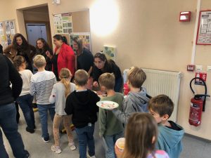 Merci aux parents qui ont également apporté des yaourts, des fruits, du fromage, des légumes, des jus de fruits etc … et à tous ceux qui se sont rendus disponibles ce matin pour aider lors de ce beau moment de partage !